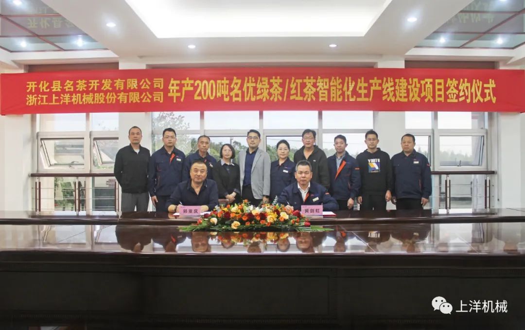 更多內容10月24日,開化名茶開發(fā)有限公司與上洋機械正式簽約“年產200噸名優(yōu)綠茶/紅茶智能化生產線”建設項目。