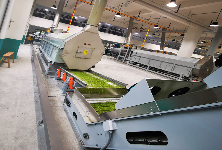 機組組成:本機組由鮮葉輸送機、超高溫?zé)犸L(fēng)茶葉滾筒殺青機、冷卻輸送機、機組集成控制系統(tǒng)組成。